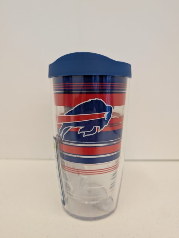 Cheer on the Buffalo Bills with this awesome striped Tervis Tumbler. The Bills logo is on one side and on the other it says Bills.
