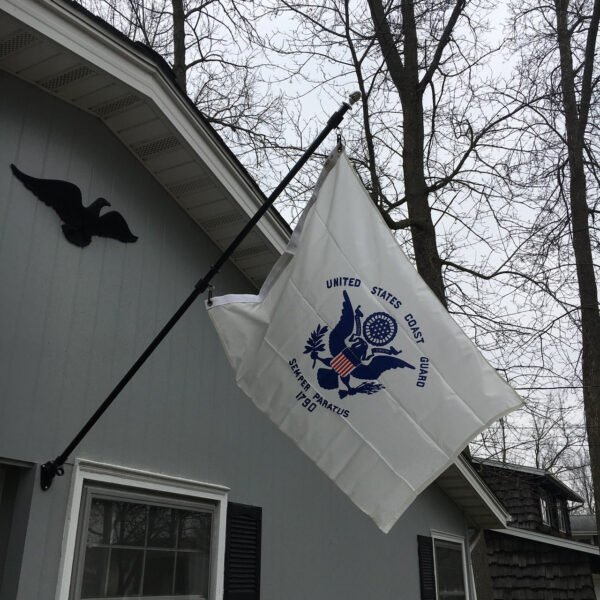 When flying the Coast Guard flag on the same flagpole as the American Flag always fly one size smaller. This looks the best in proportion and puts less stress on your flagpole. For example: 3’x5′ Coast Guard flag pairs with a 4’x6′ American Flag.