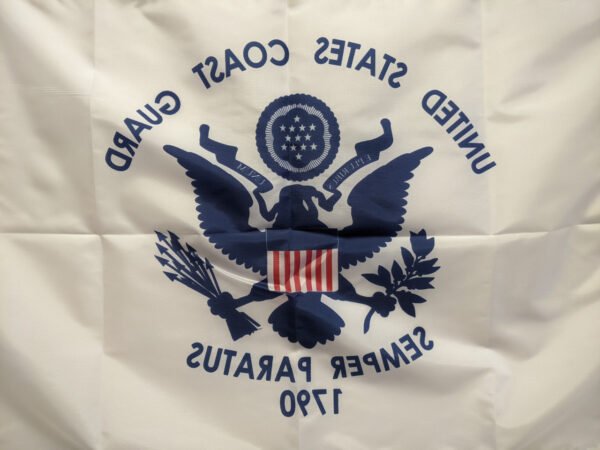 United States Coast Guard Flag–Single Reverse Print as mandated by the United States Coast Guard.