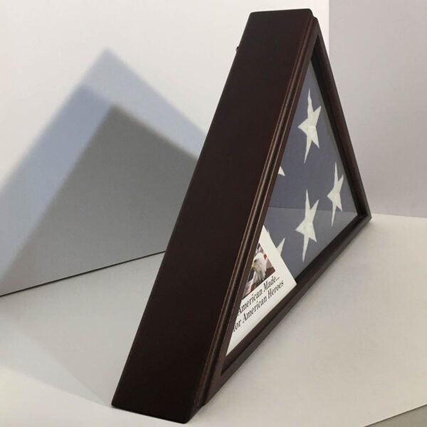 The Veteran flag case is the classic style with glass front and removable back panel with turn-button closures. Supplied with hardware to hang the case on a wall if desired.
