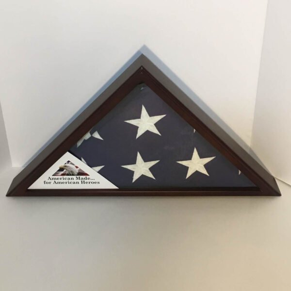 Made in America Veteran flag case holds the standard 5’x9.5′ Burial Internment flag.(not included) The Veteran flag case is the classic style with glass front and removable back panel with turn-button closures. Supplied with hardware to hang the case on a wall if desired. Proudly display your loved ones flag in this American Made flag […]